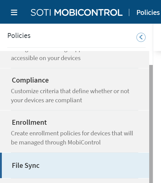 Please Click on  ≡ (Hamburger Icon) --> Policies -->File Sync