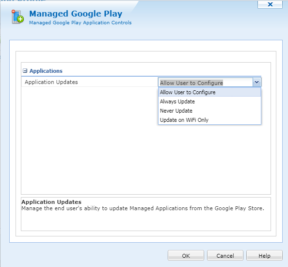In version 14.2 there is a new payload for Android Enterprise that allows to configure how these applications are updated: