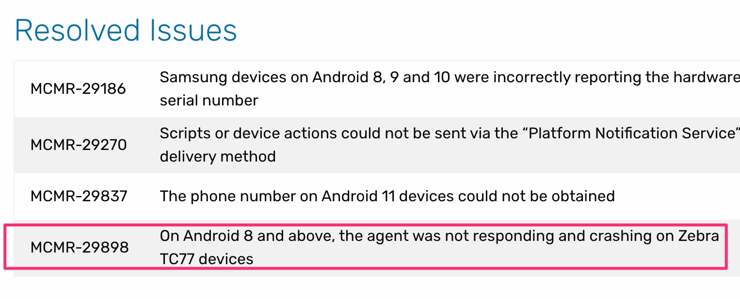 we have updatet all our TC77 to agent 15.1.1 now all 8000 TC77 got an error message that mobicontrol has been stopped... "close or wait" if i choice wait the error message pops up after a couple of minutes. for our employees it's not possible to work with this error message. i have already opend an tickt. but maybe someone of you have an idea and an fast solution . btw. rollback is not possible.