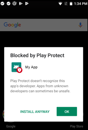 If I click on "INSTALL ANYWAY" the app is correctly installed.