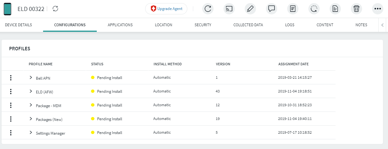 For those wanting the details: we're enrolling Samsung T377Ws as Android Enterprise devices using afw#mobicontrol and scanning a Stage barcode to complete the deployment. Server version is 14.4.4. The device successfully joins our on-premises deployment server, but enrollment comes to a grinding halt when the agent attempts to install the required Profiles: