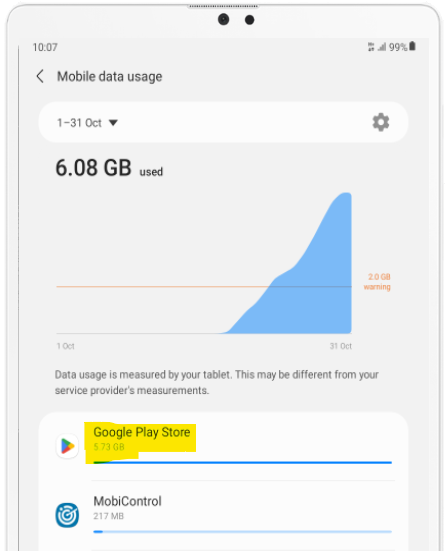 I have an issue that has started in the last month or so, where the majority of our managed devices have started using abnormal amounts of data, and upon looking into it on the device it is showing as coming from the Google Play Store. Typically, we would see less than 1GB of data from the Google Play Store per month, but we are now seeing 5GB+ consistently.