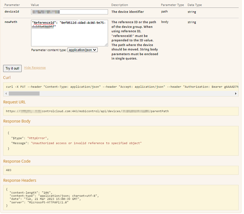 I'd like your help to understand how to move a device from one device group to another. According to the API documentation there are 2 ways that we can go about this. However, I haven't succeeded in either of ones.