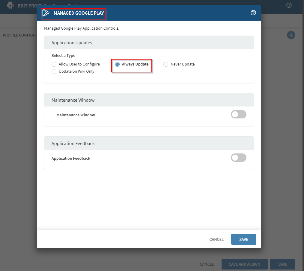 Would you like to push Managed Google Play Profile as "always update" and test it from your side and let us know?