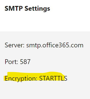 According to Microsoft documentation, the smtp server must use STARTTLS.