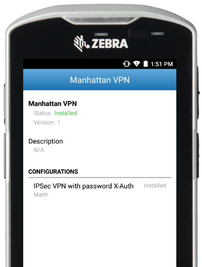 I've created a VPN Android+ Profile and have assigned it to a Zebra TC51 running Android Nougat enrolled in Device Administrator mode. The Profile shows as being installed. Am I missing a step here?