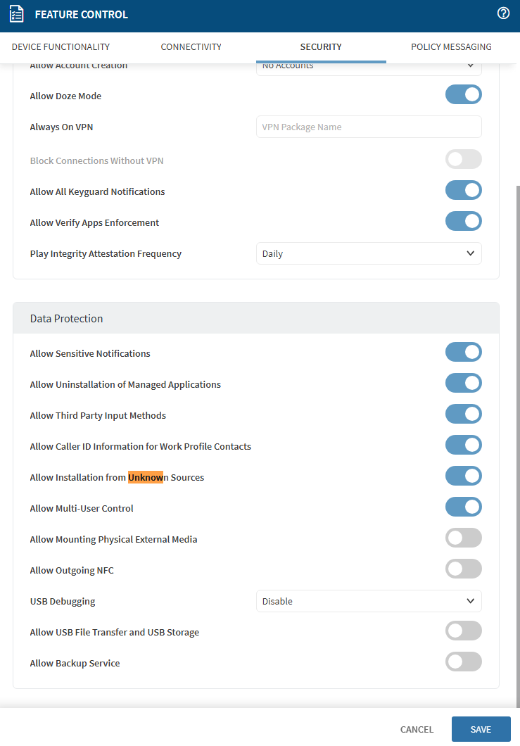 We enabled all settings on the kiosk. That's how we solved the problem. Zebra has removed this support. It was asking for this permission when trying to install the app as an apk.