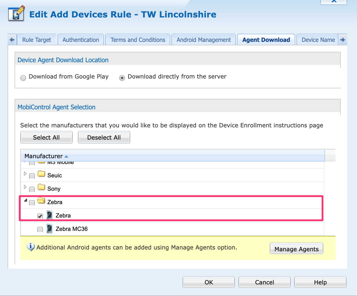 I set up a test environment with version 15.0.1.1181, but when i try to create an Add Rule for Android devices, it gives me an error saying: