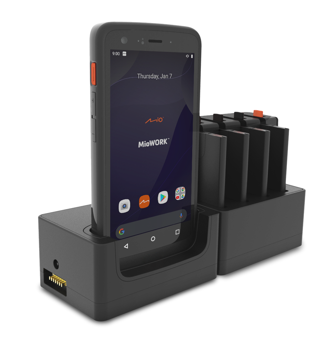 The MioWORK™ A500s Series is a rugged handheld computer designed for a wide range of enterprise-grade applications. With a power-efficient Qualcomm® Octa-core SoC at its core, the device runs Android™ 10.0 equipped with GMS and boasts advanced Wi-Fi and LTE technologies; offering frontline workers a familiar, powerful and reliable tool to take on the task at hand. The device is further equipped with a high-capacity battery that is swappable during operation. This offers a cost-effective solution by enabling businesses to achieve maximum utilisation throughout consecutive shifts, without the need to operate multiple sets of devices.