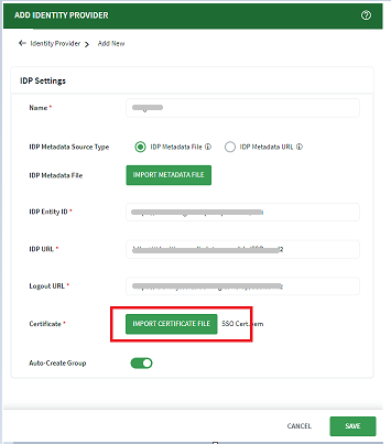 5. In SOTI Connect, select Import Certificate within the Identity Provider window, and upload the new certificate file.