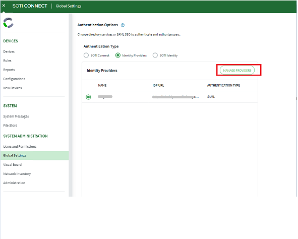 2. Select Console Settings > Authentication Options > Manage Providers.