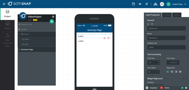 Step 3) Drag 2 label widgets onto your canvas as shown in Figure 8. You'll want to rename ID/Name for easier identification purposes (i.e.: Labelscore and labelvid)