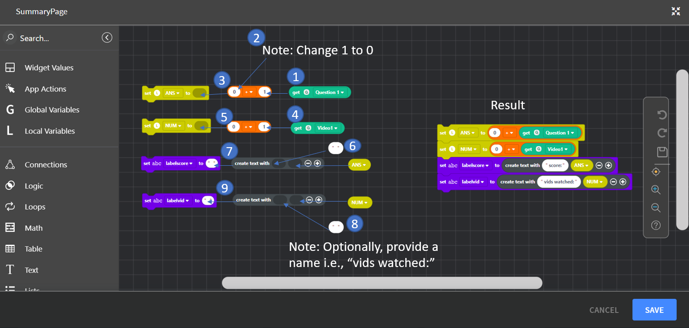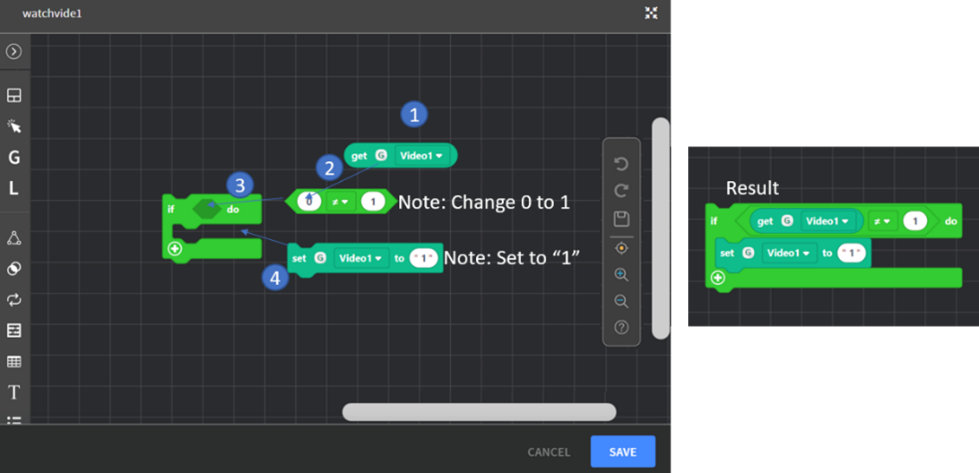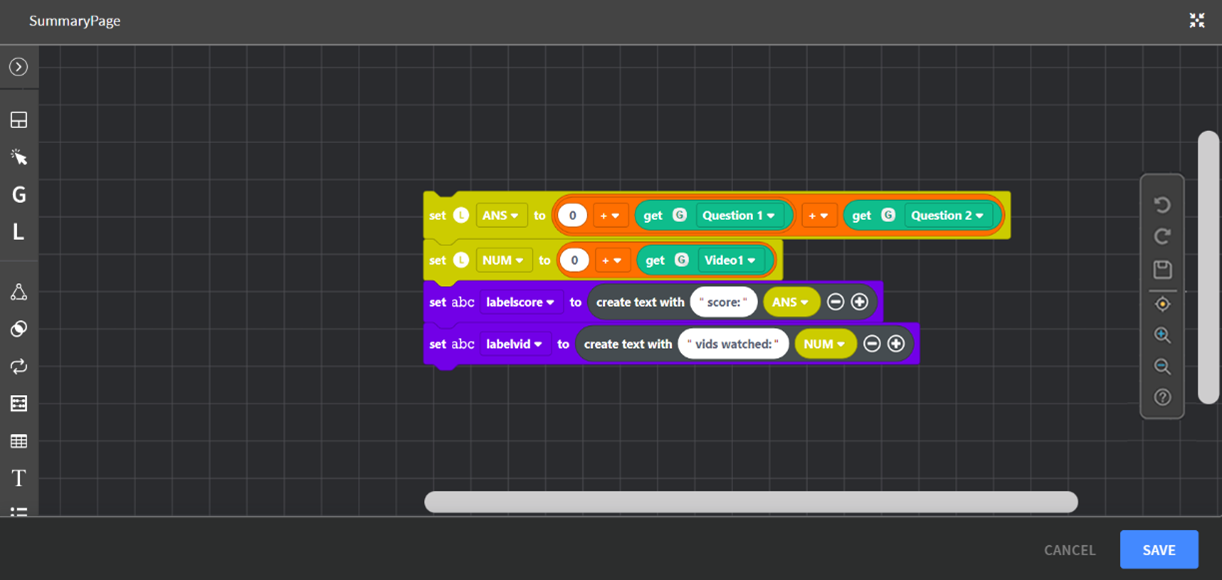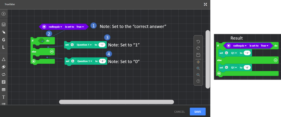 Pro tip: If there are more than 1 question > Create a new global variable > Follow the same step as Figure 14 > Create the Blockly as shown in Figure 16.