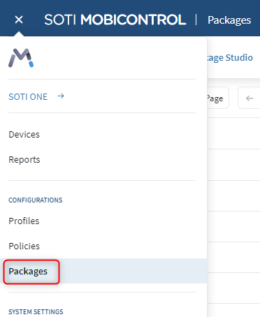 6. Log in to the SOTI MobiControl web console and navigate to the packages tab from the main menu.
