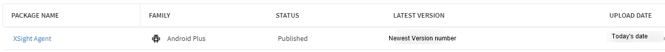 7. The SOTI XSight agent for the Android Plus or Windows family will be visible with the latest version that was just created in SOTI XSight.