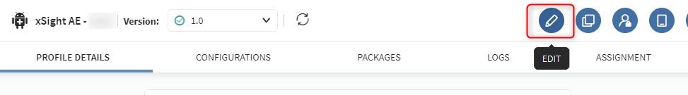 8. Choose profiles from the main menu and navigate to the existing SOTI XSight agent profile.