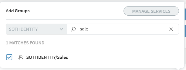 - Search and add all the SOTI Identity user groups that were associated with the “Custom Role 1” SOTI Identity role prior to upgrade: