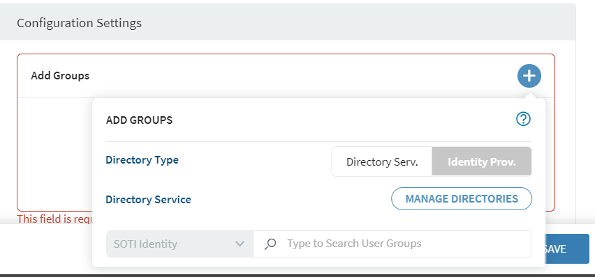 - A pop-up appears that allows you to search for SOTI Identity user groups: