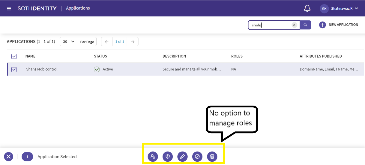 - The "Manage Roles" action against a specific SOTI MobiControl application in SOTI Identity is removed. SOTI Identity now fetched roles directly from SOTI MobiControl: