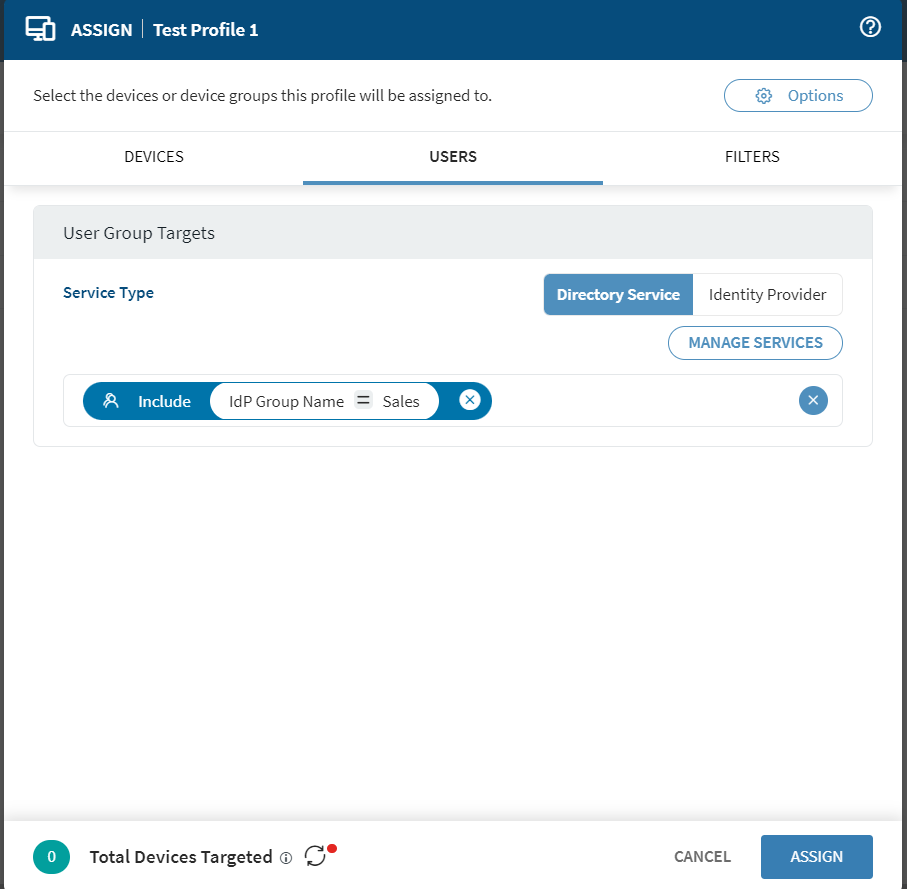 - SOTI Identity user groups are used in users filter for Profile Assignment