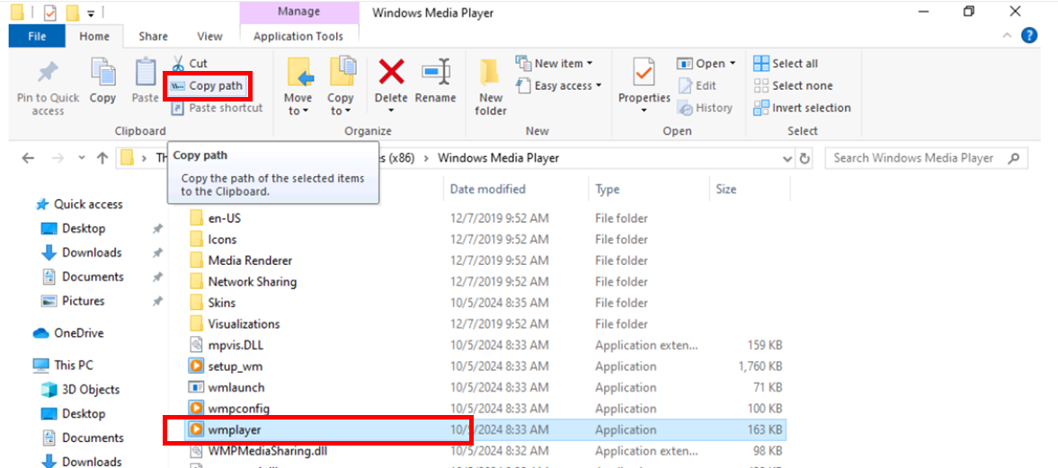 - Paste the copied path in a text file for later use. Note: In this case, Windows Media Player x86 is used as an example of a custom Desktop Classic application. Its path is: