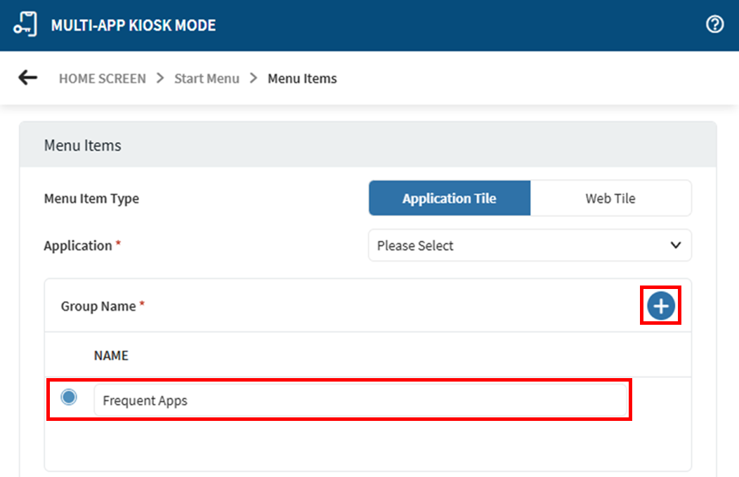 - Scroll down to the Start Menu section and select (+) Add to add a Start Menu item.