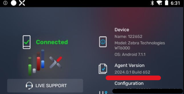 Note: If the SOTI XSight agent is up-to-date but Live Support shows a disconnected status, verify the SOTI XSight agent version. An outdated agent can lead to Live Support issues.